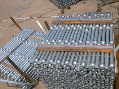 ③、穿入欄桿管件至第一根立柱半個球位,其余部分懸空。