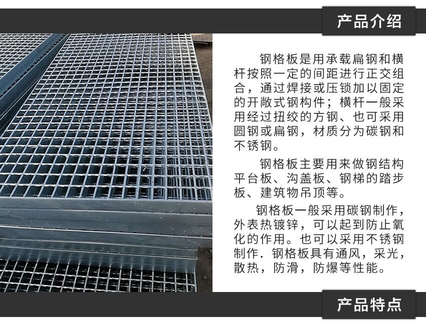 格柵板具有外形美觀、最佳排水、防銹力強,免維護及更換、防盜、節省投資、高強度、規格多等特點。