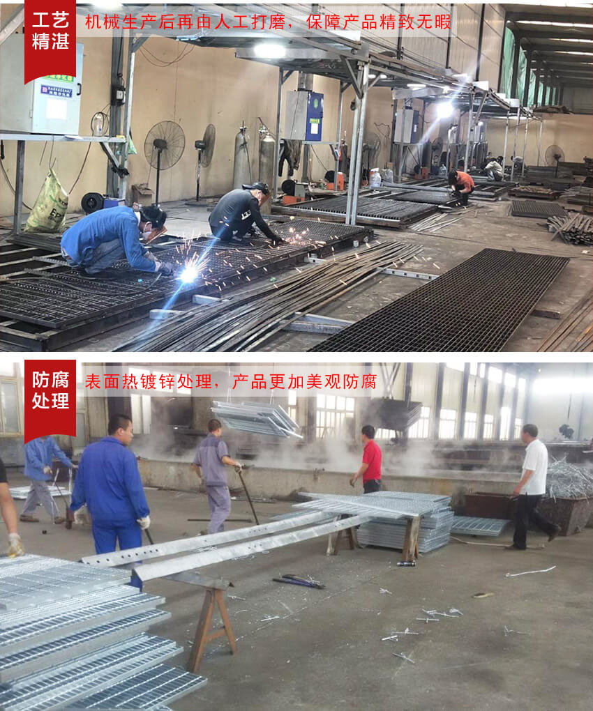 格柵板是用扁鋼按照一定的間距和橫桿進行交叉排列,并且焊接成中間帶有方形格子的一種鋼鐵制品,主要用來做水溝蓋板,鋼結構平臺板,鋼梯的踏步板等。橫桿一般采用經過扭絞的方鋼。鋼格柵一般采用碳鋼制作,外表熱鍍鋅,可以起到防止氧化的作用。也可以采用不銹鋼制作。