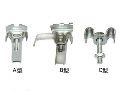 鋼格板安裝夾原則上一般一平米鋼格板不少于 4 套鞍形夾, 安裝在鋼格板的 4 個角上。但是對于跨距較大的鋼格板最好在可利用的支承物上多安裝幾套,數量上也應適當增加。 鞍形夾是最常用的固定方式。大致有三種類型:A型 B型 C型。