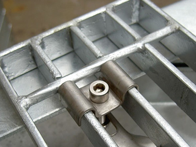 鋼格板固定方法:可選用焊接和安裝夾緊固兩種方法。焊接的優點是永久固定,不會松脫;鋼格板安裝夾的優點是不破壞熱浸鋅層及拆卸方便。最安全的方法是不用下夾,直接將螺釘頭倒焊在梁上,保證鋼格板不會因安裝夾松脫而從梁上滑落。